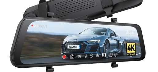 Acumen M4 Mirror DVR features 2-camera recording, WDR-enhanced Video quality, GPS logging system, parking monitoring and blind spot reduction.